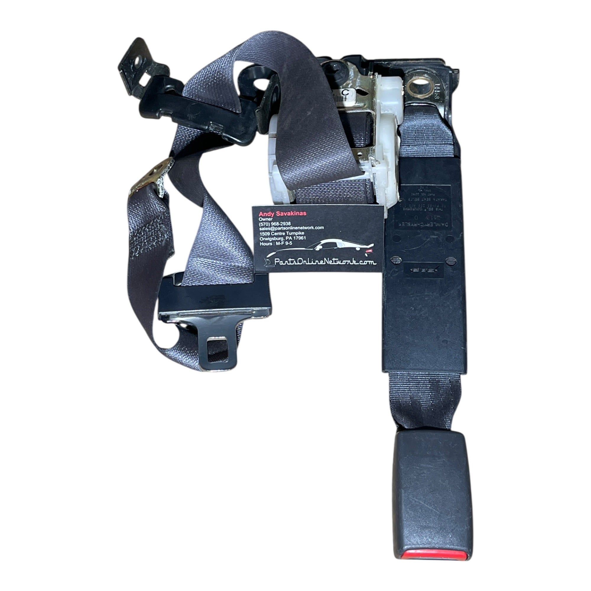 2002-2005 Dodge Ram quad cab rear center seatbelt retractor and buckle. These parts are tested and confirmed operational prior to removal. They are available in dark slate gray or tan. OEM part #s are 5GU501DVAG 5GU501L8AD 5GU501L8AG