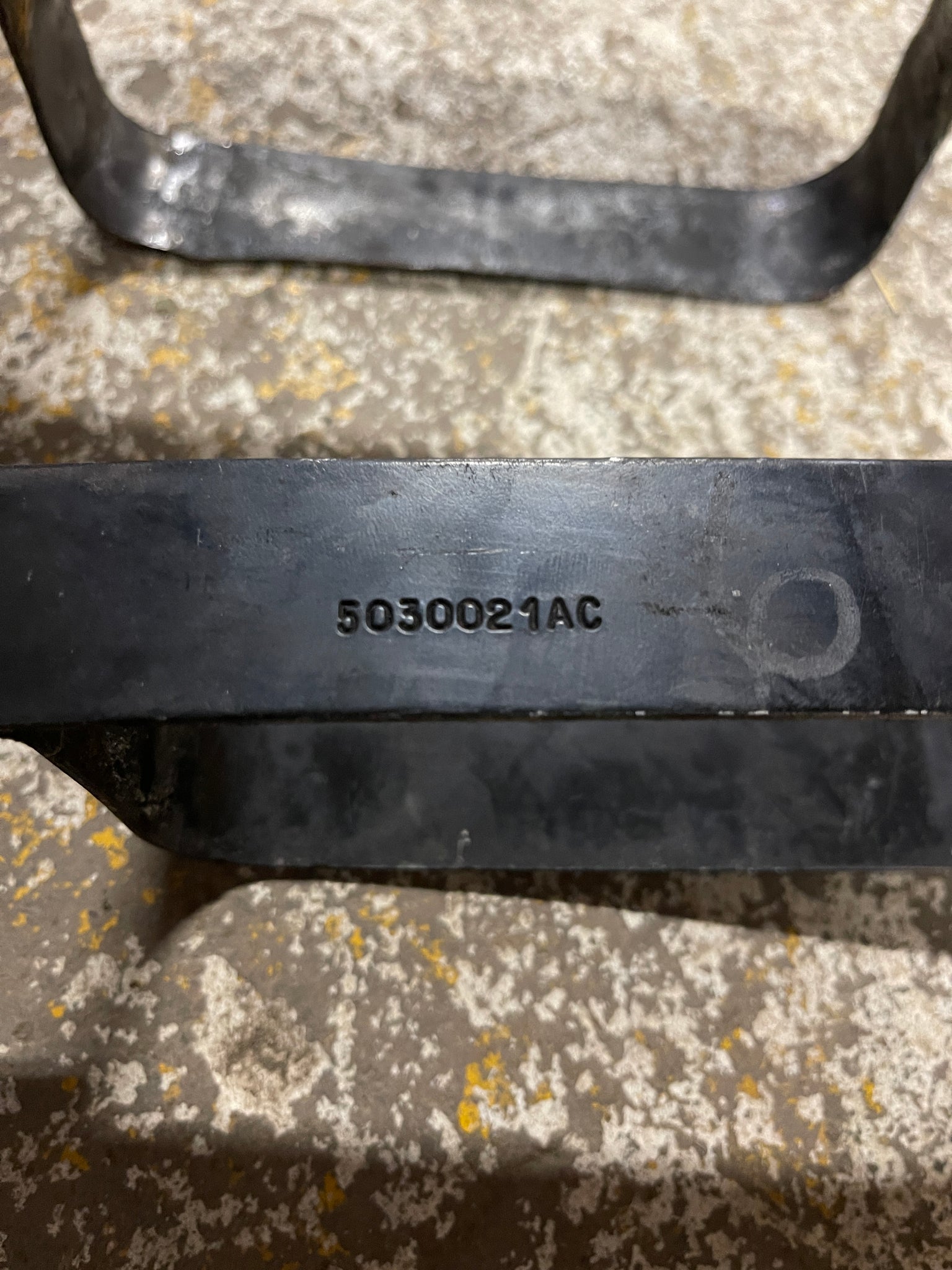 2004-2006 Dodge Ram SRT10 belly pan brackets. These are the brackets that go around the frame rails and attach to and hold the rear of the belly pan up. The brackets are the same side to side. They are used parts and cosmetic blemishes are to be expected. This part is discontinued from Chrysler. The price is for 1, 2 are required if mounting a belly pan to a truck that doesn't have them. Please be sure to order the correct year as they are different lengths.